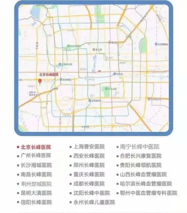 ▲全国各地有多家长峰医院。图/北京长峰医院官网